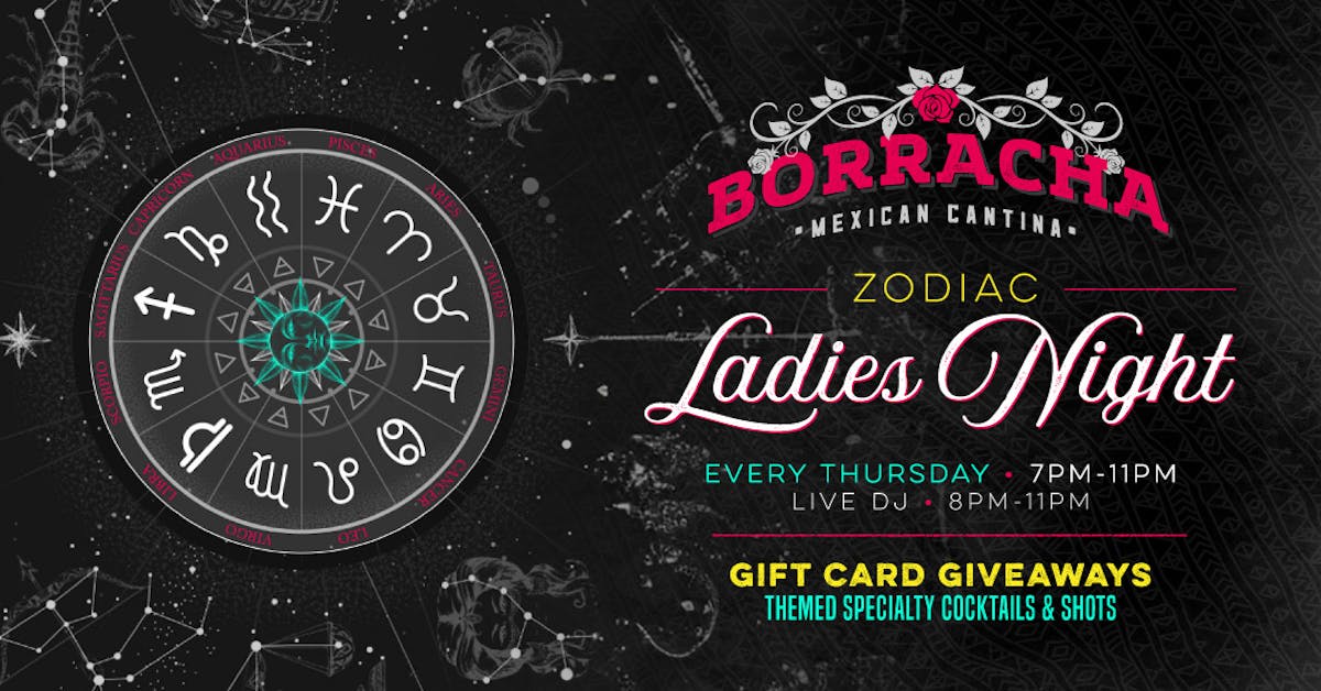 Join us at Borracha Mexican Cantina on April 11th for a zodiac-themed ladies night that promises to be out of this world. From tarot readings to tantalizing cocktails and lively beats, it's an event you won't want to miss. Bring your friends, unleash your inner star, and let the cosmic magic unfold!